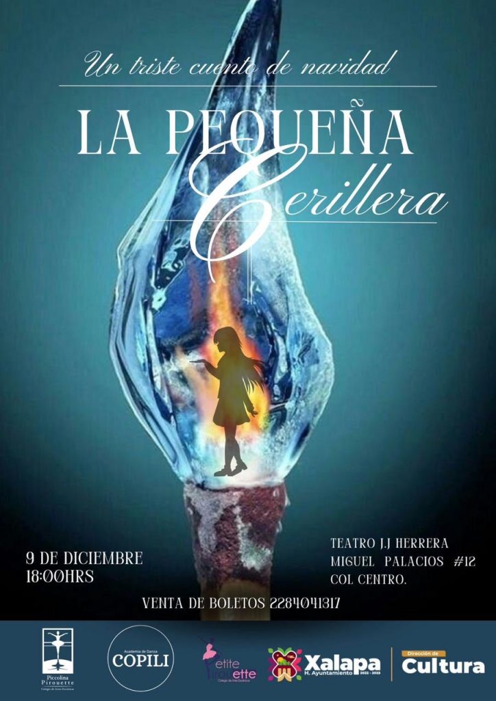 Este lunes 9 de diciembre, a las 17:00 horas, la comunidad musical CODA tendrá un concierto en el Centro Recreativo Xalapeño (CRX). A las 18:00 horas, se presentará el espectáculo “La pequeña cerillera, un triste cuento de Navidad”, a cargo de Piccolina Pirouette.