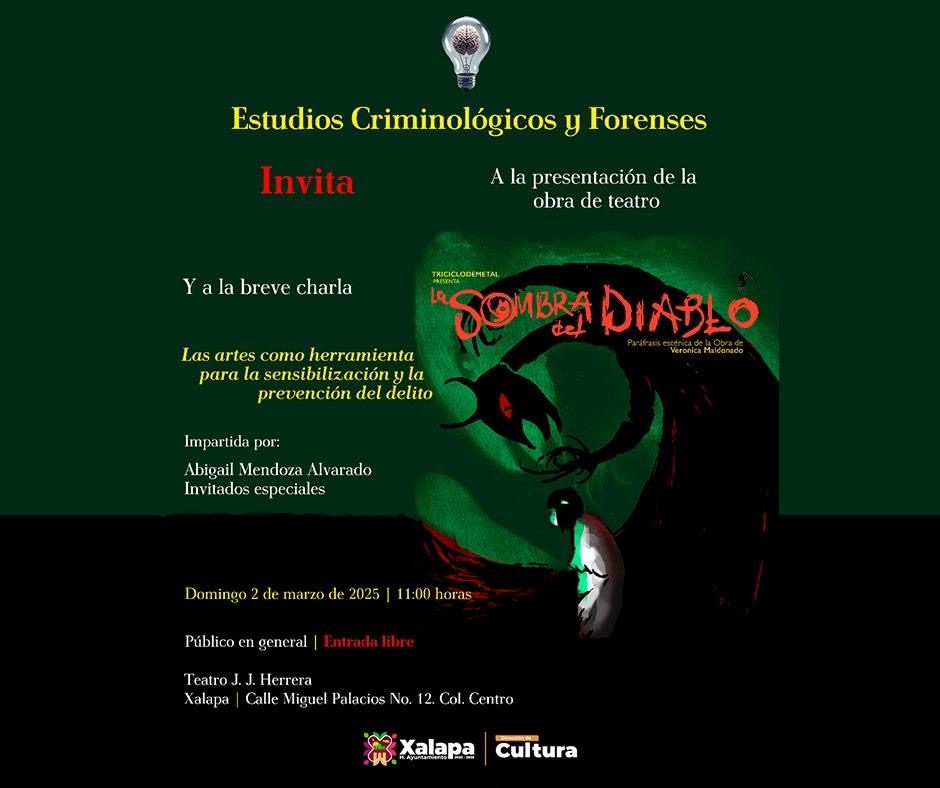 El domingo 2 de marzo llegará la obra “La sombra del diablo” al Teatro J. J. Herrera, a las 11:00 horas; a las 12:00 horas, en el Parque Juárez, se llevará a cabo el programa “Domingos Familiares”.