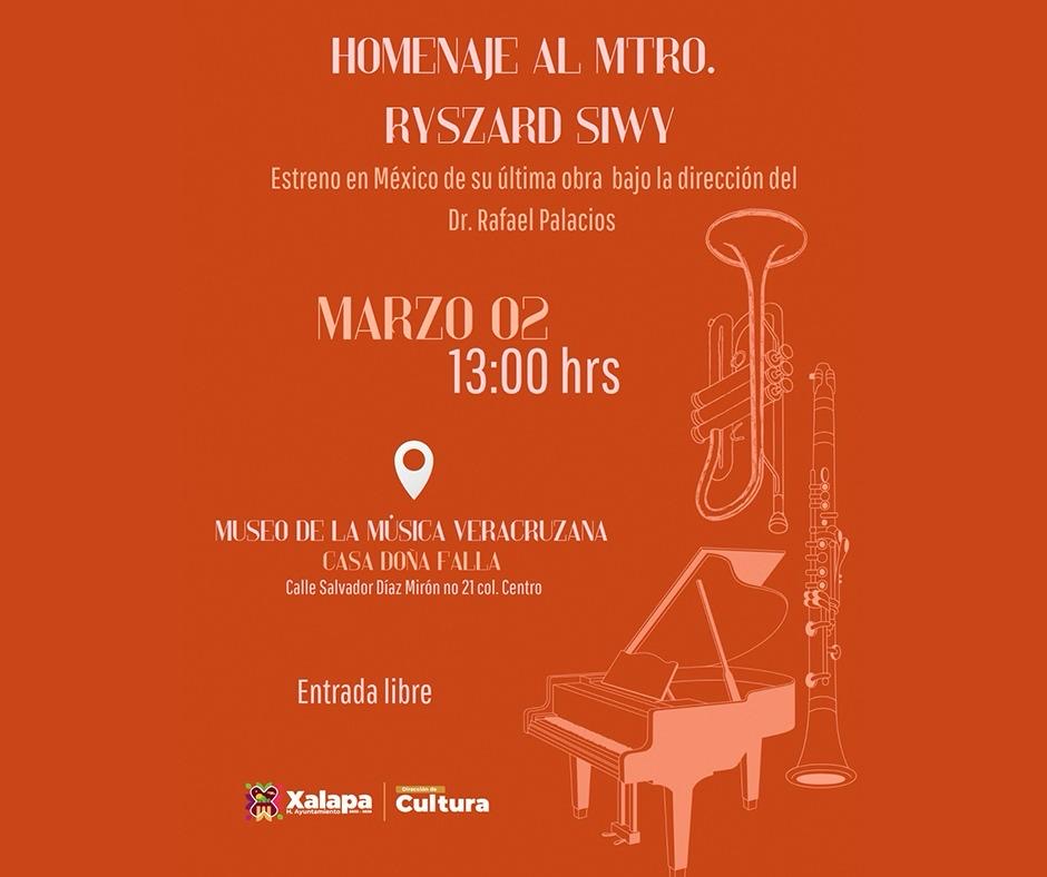 A las 12:00 horas, en el Muxa, se impartirá un taller de bisutería a cargo de Suzana Zamora Salgado; en el Museo de la Música Veracruzana, a las 13:00 horas, se rendirá homenaje al maestro Ryszard Siwy; a las 14:00 horas, en el Parque Juárez, se realizará la segunda jornada del programa “Mujeres en el arte”, con una charla sobre María Izquierdo y un taller de pintura impartido por Ana Serena.