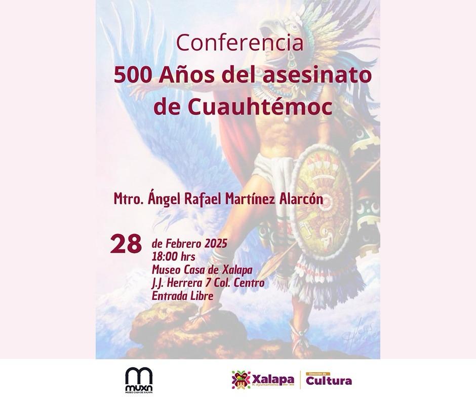 El 28 de febrero, en el Muxa, se ofrecerá la charla “500 años del asesinato de Cuauhtémoc”, con Ángel Rafael Martínez Alarcón, a las 18:00 horas. En el mismo horario, en el auditorio de la IMAC, la Banda Sinfónica del Gobierno del Estado de Veracruz presentará “Concierto al amor”.