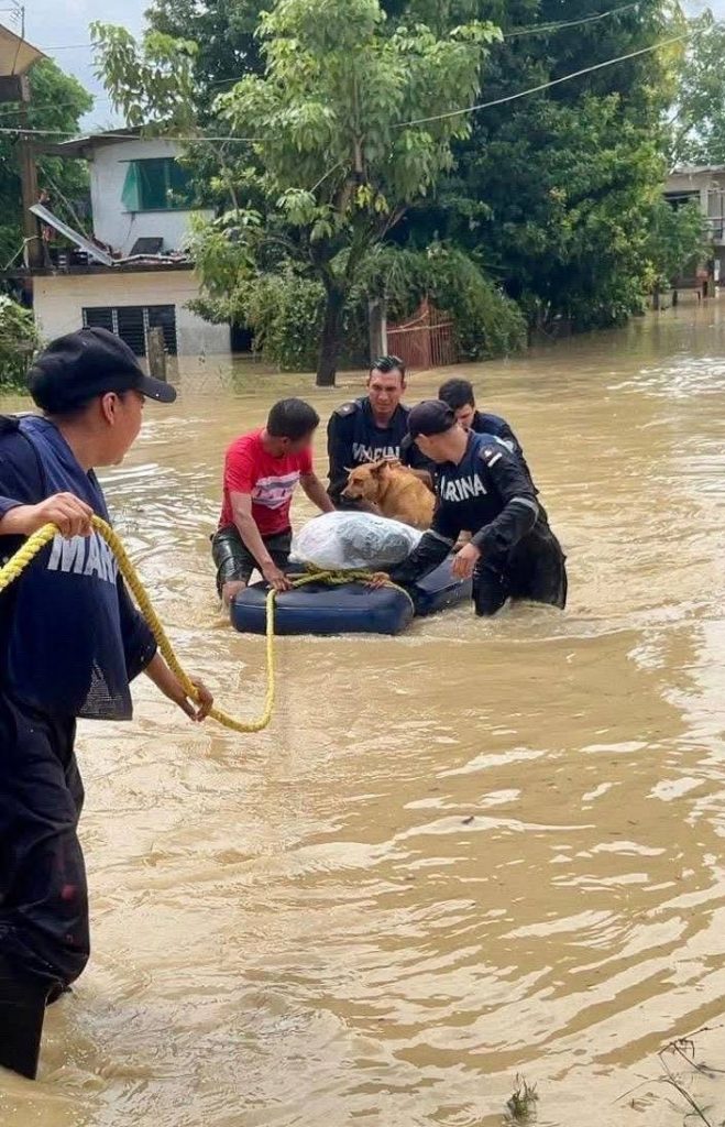 En Poza Rica, Veracruz, tras el desbordamiento del Río Cazones, 1,236 elementos navales han auxiliado a más de 2,000 personas, a través de: