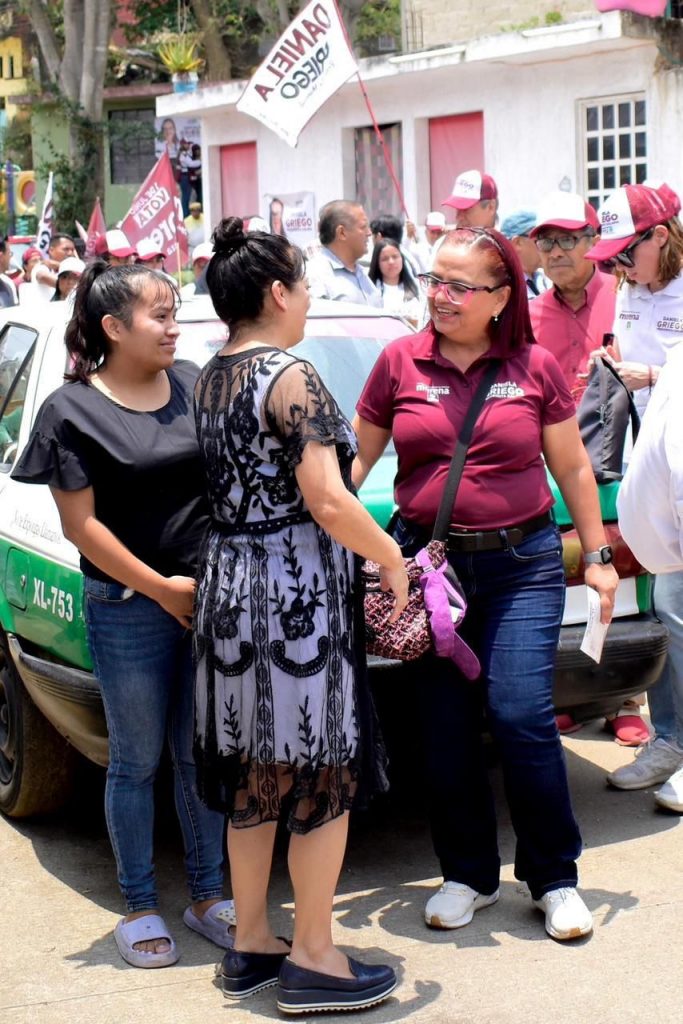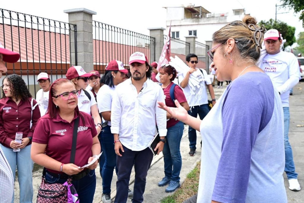 Xalapa, Ver., 4 de mayo de 2025.- Tras atender varias actividades desde las primeras horas de este domingo, Daniela Griego Ceballos, candidata de la coalición Sigamos Haciendo Historia a la alcaldía de Xalapa, acompañada de su planilla y el diputado local Antonio Ballesteros Grayeb caminaron más de ocho kilómetros en las calles de Lomas del Sumidero, Infonavit Sumidero, Jardines del Castillo y El Tanque.