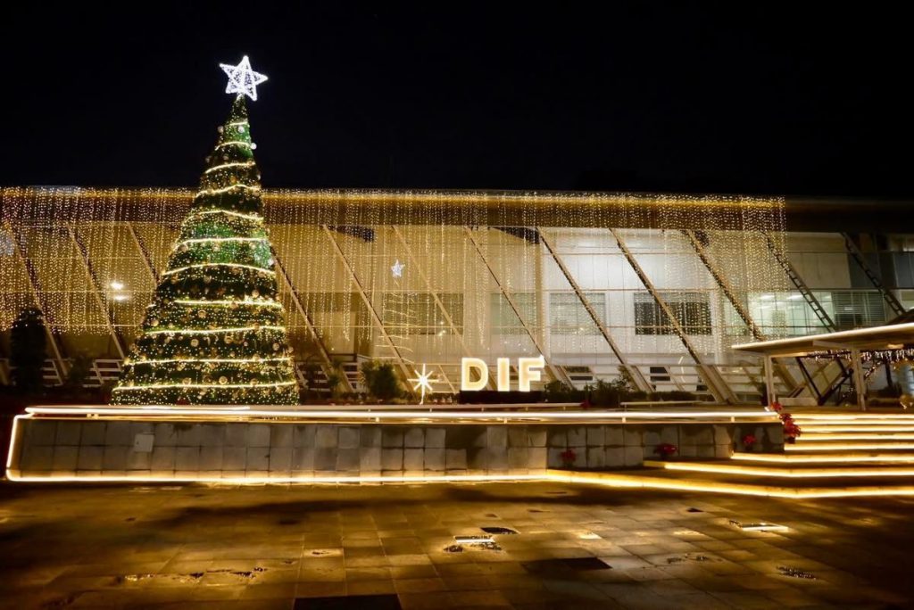 Junto con la directora general del DIF Estatal, Clara Mora Juárez, y trabajadoras y trabajadores de las distintas áreas, realizó el tradicional conteo regresivo que dio paso a la iluminación del pino navideño, de más de 10 metros de altura, así como de los adornos que evocan las tradiciones decembrinas y llenaron de luz y color la explanada del recinto.