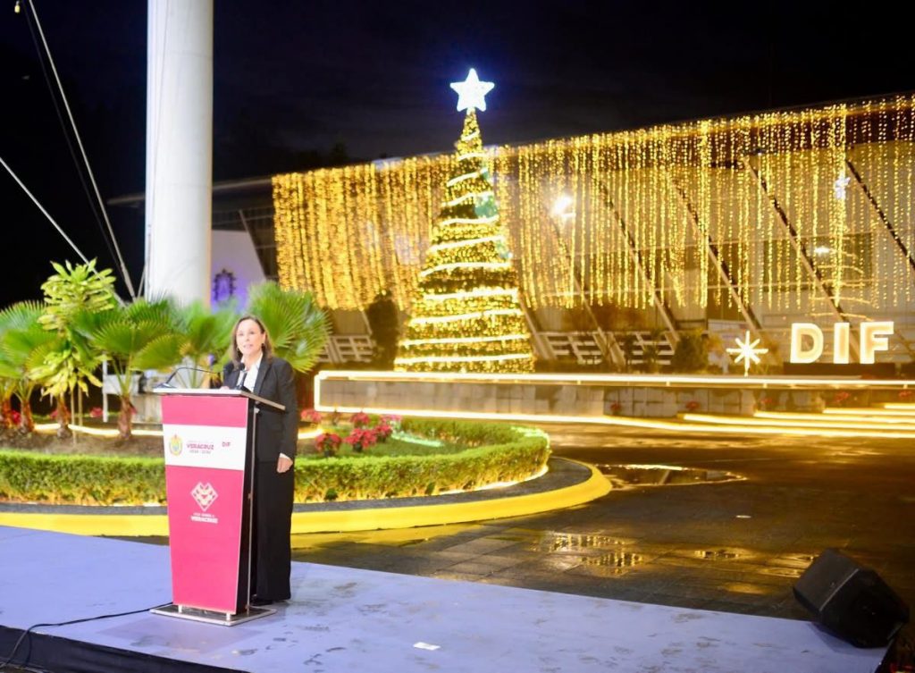 Xalapa, Ver., lunes 15 de diciembre de 2025.– En un ambiente de alegría y cercanía, la gobernadora Rocío Nahle García encabezó el encendido del árbol navideño en las instalaciones del Sistema Estatal para el Desarrollo Integral de la Familia (DIF), acompañada por personal del organismo asistencial y familias veracruzanas.