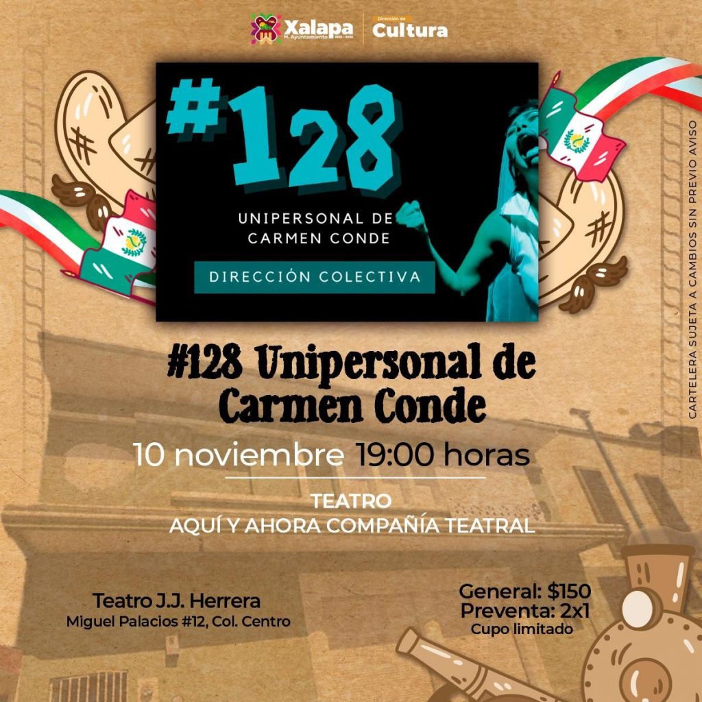 El 10 de noviembre a las 19:00 horas en este último espacio cultural, Aquí y Ahora Compañía Teatral presentará “#128 Unipersonal de Carmen Conde”, y paralelamente, está prevista una edición más de los “Viernes de Punchis Punchis”, con la participación de Malajosa, Fredder, Pecerre y Taquero Loco.