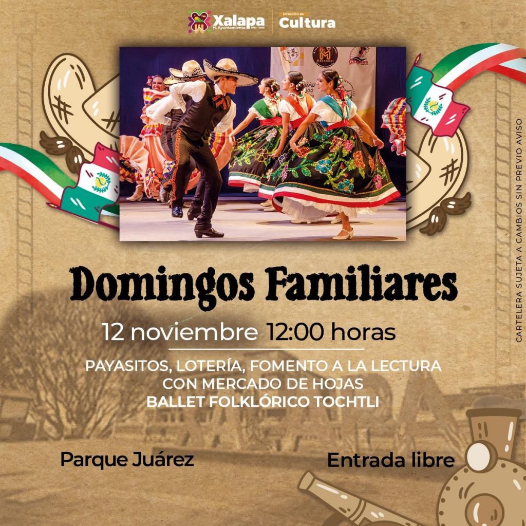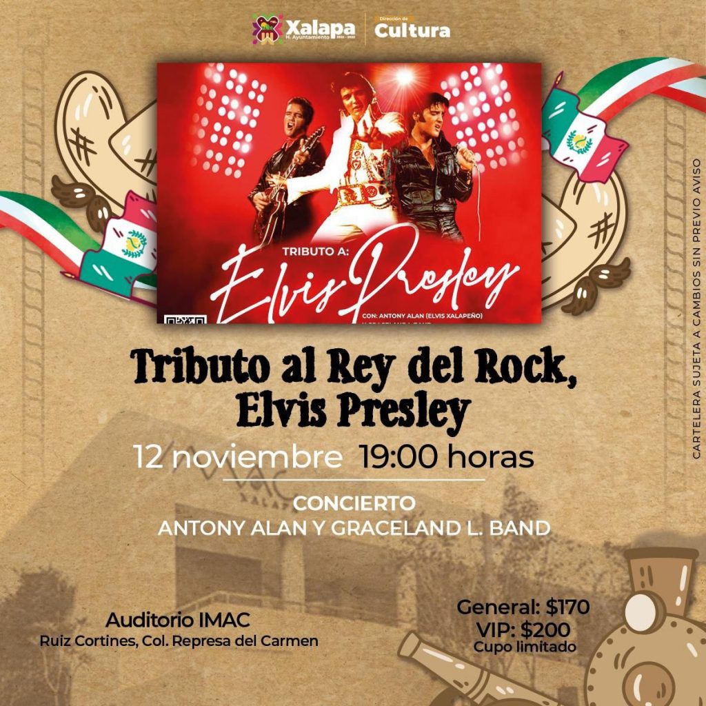 El 12 de noviembre a las 12:00 horas en el parque Juárez estará el Ballet Folklórico Tochtli, acompañado de un show de payasitos y fomento a la lectura con mercado de hojas; a las 17:00 horas se desarrollará Danzón pal’ Corazón en este mismo lugar, y “Música de y para Mujeres” en el MUXA. Por último, a las 19:00 horas en el Auditorio de la IMAC habrá un Tributo al Rey del Rock, Elvis Presley.