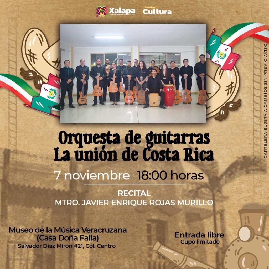 El 7 de noviembre a las 18:00 horas en este mismo recinto cultural, se exhibirá el filme “Ichi the killer” (2001), del director Takashi Miike, y a la misma hora, pero en el Museo de la Música Veracruzana se tendrá un recital del maestro Javier Enrique Rojas Murillo y la Orquesta de Guitarras La Unión de Costa Rica.