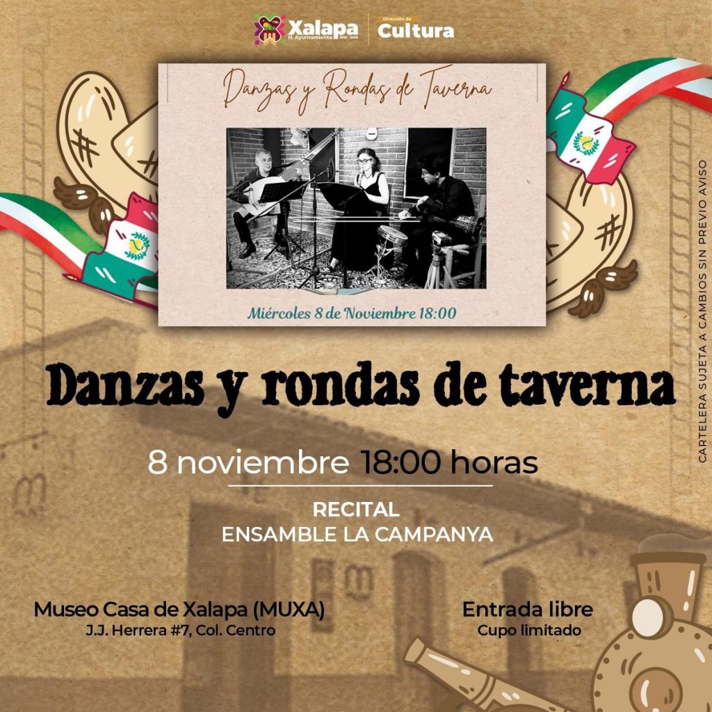 Paralelamente, el Ensamble de Campanya presentará en el Museo Casa de Xalapa (MUXA) el evento “Danzas y rondas de taverna”, y a las 19:30 horas en el lobby de la IMAC se inaugurará la exposición “La máscara, lucha por un secreto”.