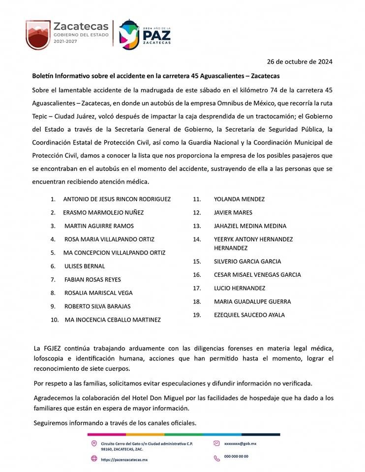 Lamentable accidente de autobús en Zacatecas deja 19 muertos