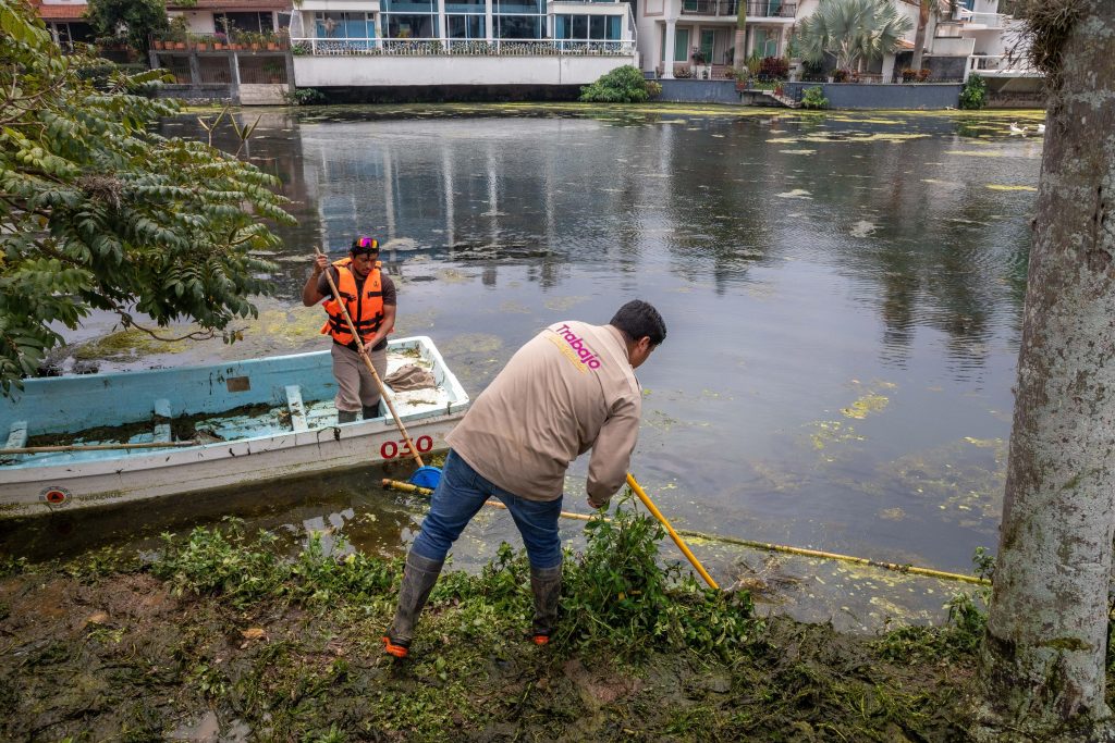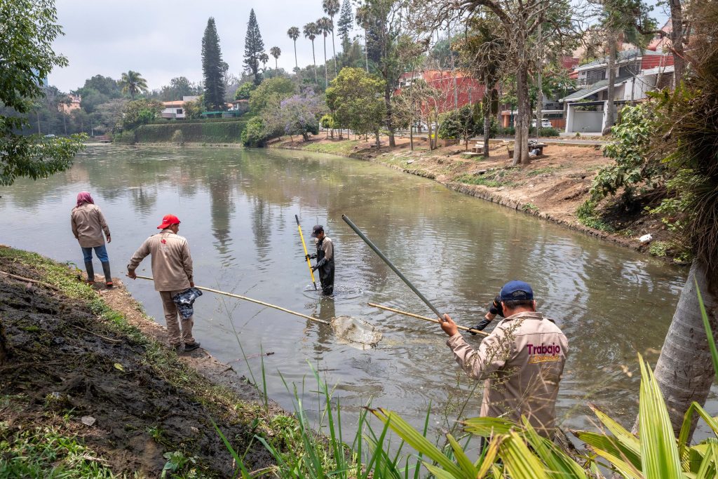 Xalapa, Ver.- Personal de la Dirección de Medio Ambiente, en coordinación con la Comisión Municipal de Agua Potable y Saneamiento (CMAS), continúa con los trabajos permanentes de limpieza en los lagos de Las Ánimas, con el fin de recuperar este cuerpo de agua.