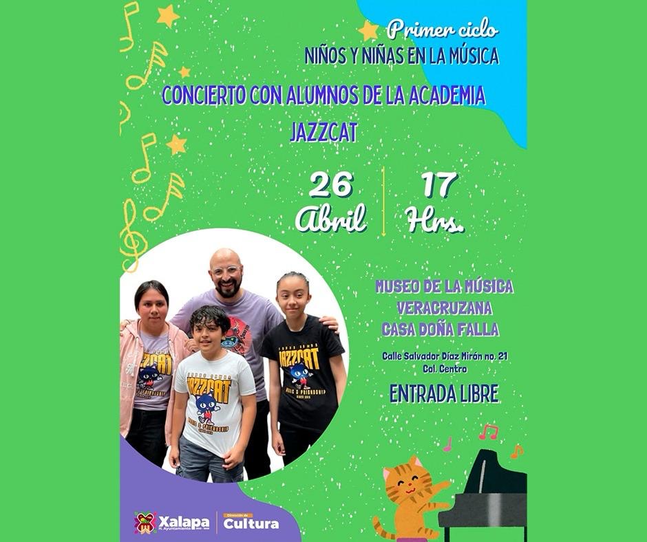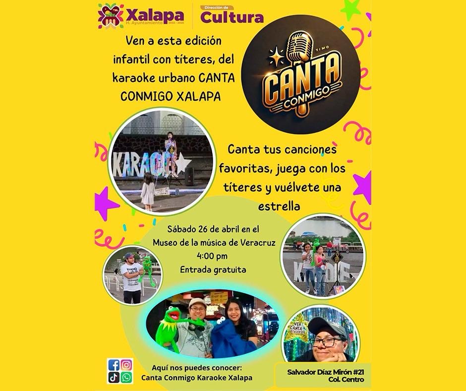 A las 16:00 horas, la Feria Xalapeña del Libro continuará su jornada en el Parque Juárez con conversatorios, presentaciones literarias y más. De manera simultánea, en el Museo de la Música Veracruzana, se llevará a cabo el concierto “Canta conmigo”, del Karaoke urbano; a las 17:00 horas se tendrá una presentación especial de los alumnos de la Academia JazzCat.