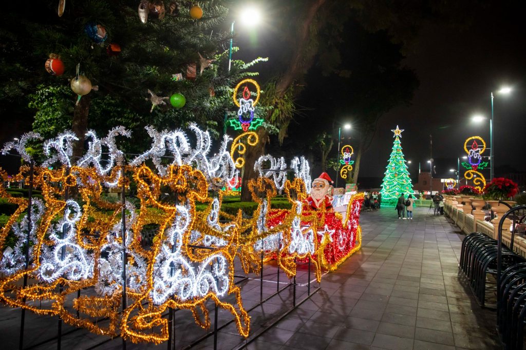 Xalapa, Ver.- En vísperas de las fiestas decembrinas, este jueves se encendieron adornos luminosos en el parque Benito Juárez, entre los que destacan Elfos, esferas gigantes y el trineo de San Claus.