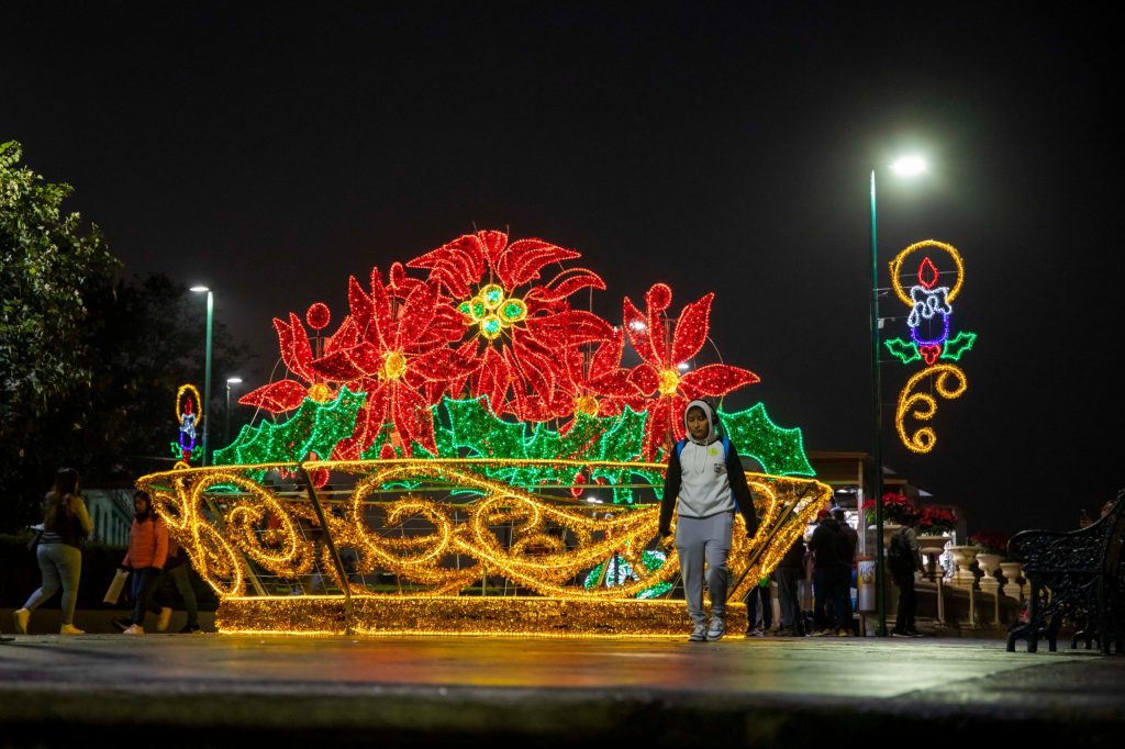 Además, habrá figuras de Nochebuenas, velas, un regalo gigante donde las familias y visitantes puede tomar fotografías o videos para llevar un recuerdo a casa o compartir en sus redes sociales, así como campanas, bastones navideños y un pino monumental.