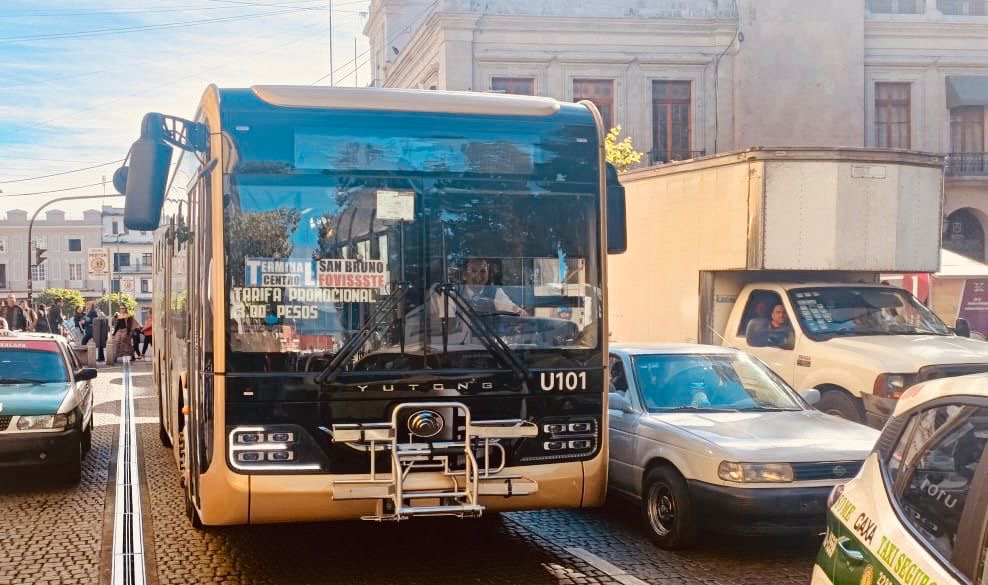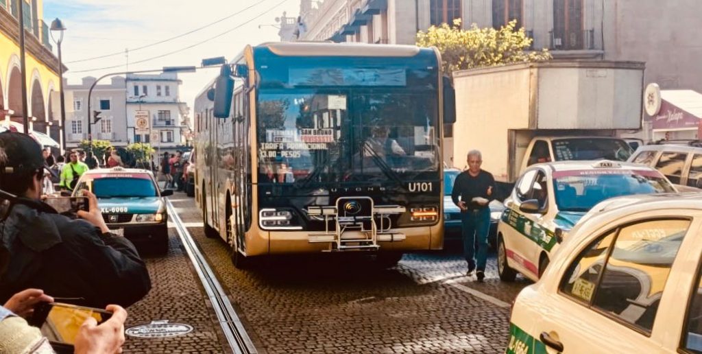 Este miércoles se vio circular por el centro de Xalapa uno de los nuevos autobúses “Ulúa”, con ruta FOVISSSTE-San Bruno.