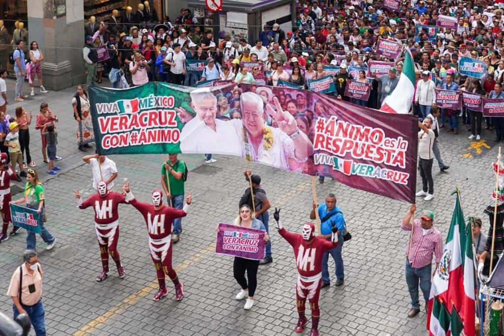Coreando las expresiones de la lucha que hace más de tres décadas llevaron al movimiento de reconstrucción nacional a su fundación, miles de ciudadanos veracruzanos pusieron la alegría, el color y el ÁNIMO en la explanada, frente a Palacio Nacional.
