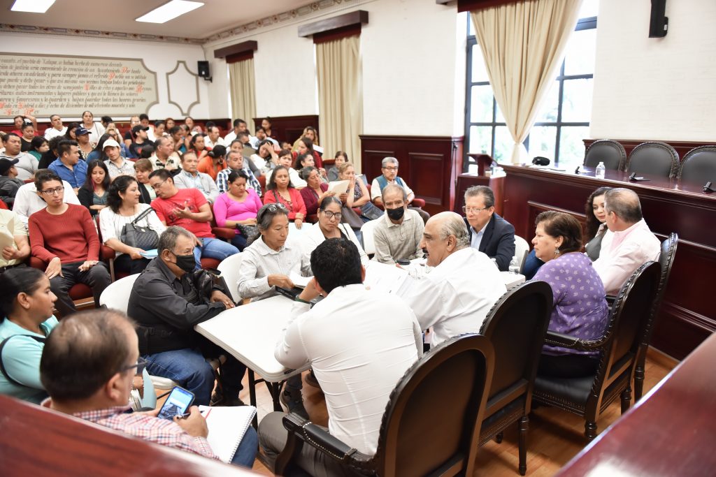 En la Sala de Cabildo, el presidente municipal Ricardo Ahued Bardahuil recibió a decenas de representantes vecinales, quienes entregaron diversas solicitudes relacionadas con el desarrollo de la obra pública.