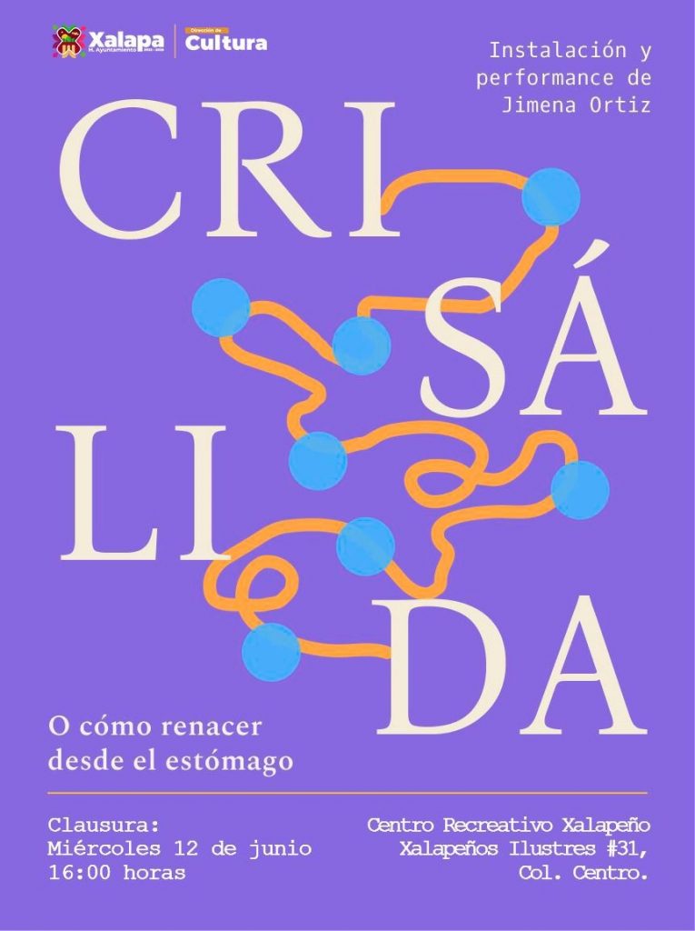 A las 16:00 horas, en el Centro Recreativo Xalapeño (CRX), Jimena Ortiz clausurará el performance “Crisálida o cómo renacer desde el estómago”; a las 18:00 horas, se inaugurará la exposición de la Orquesta de Cámara de Xalapa en el Museo de la Música Veracruzana, y a las 19:00 horas en el Teatro J.J. Herrera, se presentará el Ensamble Jazzfolk.