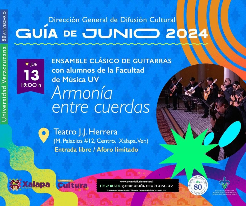 El 13 de junio a las 18:00 horas, en el Museo de la Música Veracruzana, Daniela Marinero ofrecerá el recital de piano “De Beethoven a Carrillo”, y a las 19:00 horas, en el Teatro J.J. Herrera, se presentará el Ensamble Clásico de Guitarras con alumnos de la Facultad de Música de la Universidad Veracruzana (UV).