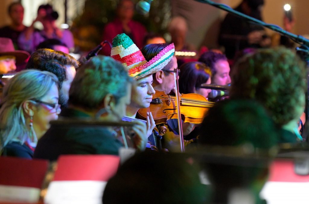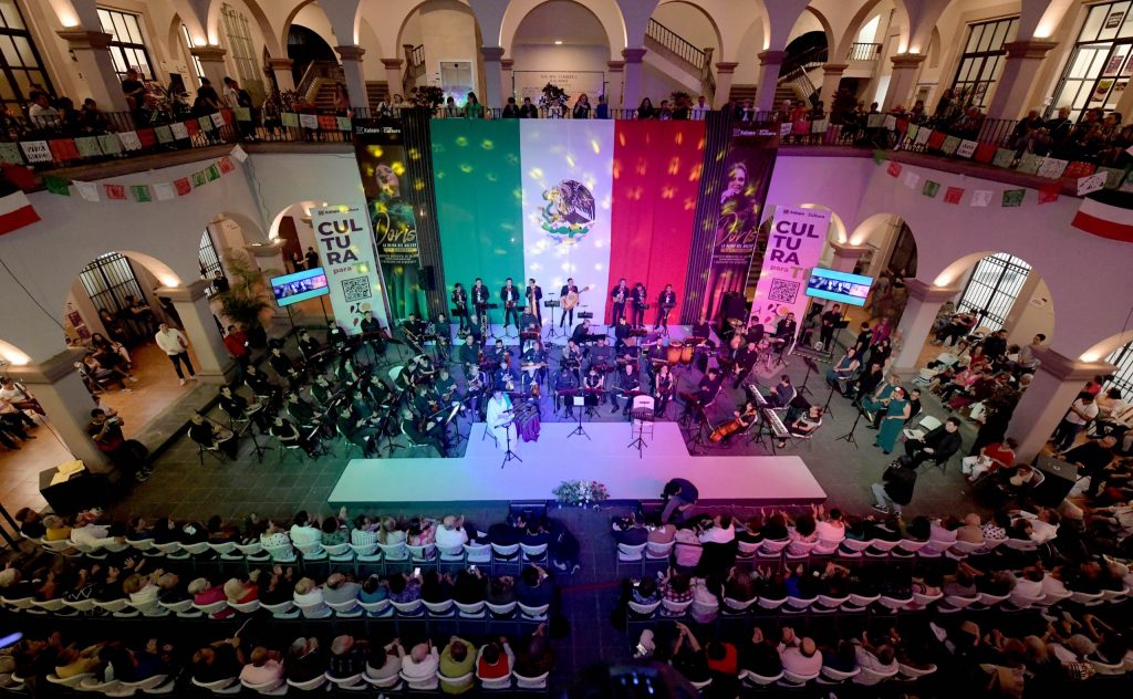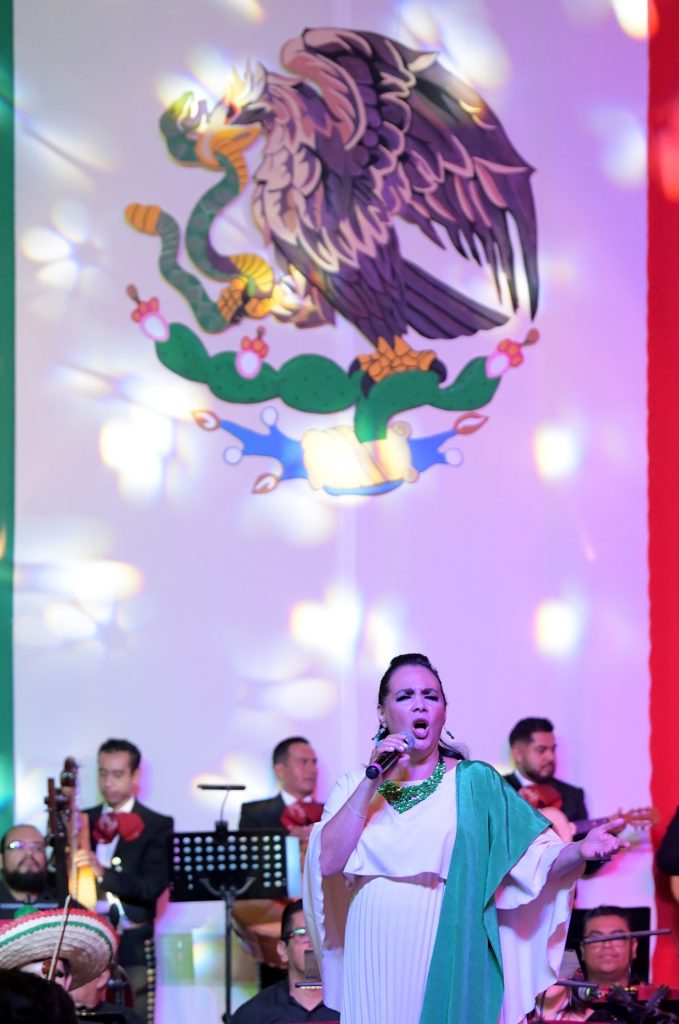 En la presentación musical desarrollada en el patio central de Palacio Municipal, la cantante estuvo acompañada por la Orquesta Municipal de Xalapa (OMX) y el mariachi “Los Hernández”.