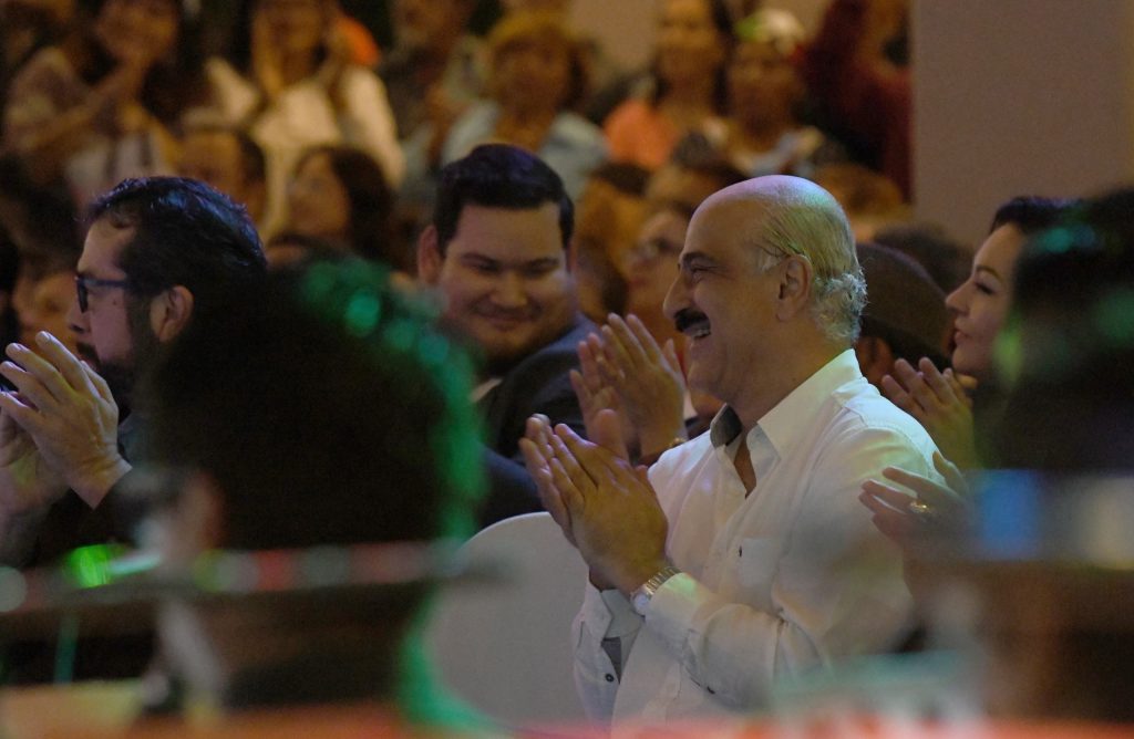 Xalapa, Ver.- Autoridades municipales encabezadas por el alcalde Ricardo Ahued Bardahuil asistieron al concierto-homenaje “Vivir cantando”, con el que se celebraron los 47 años de trayectoria artística de Doris, “La reina del bolero”.