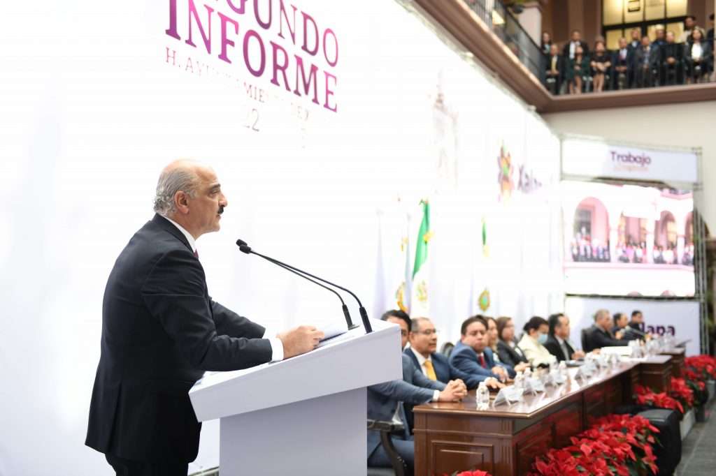 Xalapa, Ver.- En cumplimiento a la Ley Orgánica del Municipio Libre y el Reglamento Interior de Gobierno, el alcalde Ricardo Ahued Bardahuil presentó el Segundo Informe del Gobierno Municipal para dar cuenta del estado que guarda la Administración Pública Municipal 2022-2025, en el que destacó la inversión de casi 800 millones de pesos en obra, así como el manejo transparente de los recursos.