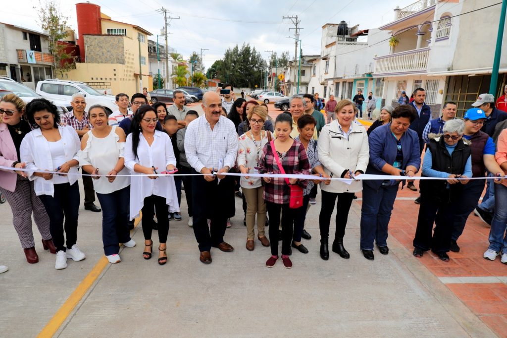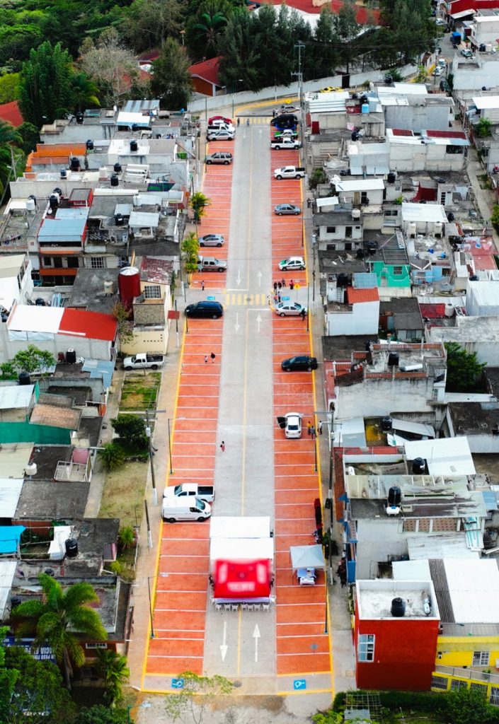 Xalapa, Ver.- La pavimentación con concreto hidráulico de 846 metros cuadrados de superficie, a los que se suman cajones de estacionamiento, señalética horizontal y vertical, guarniciones, banquetas y luminarias, conforman la obra de mejoramiento integral de la calle Principal, en la colonia La Loma, que este martes entregó funcionariado encabezado por el presidente municipal Ricardo Ahued Bardahuil.