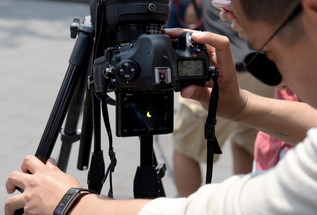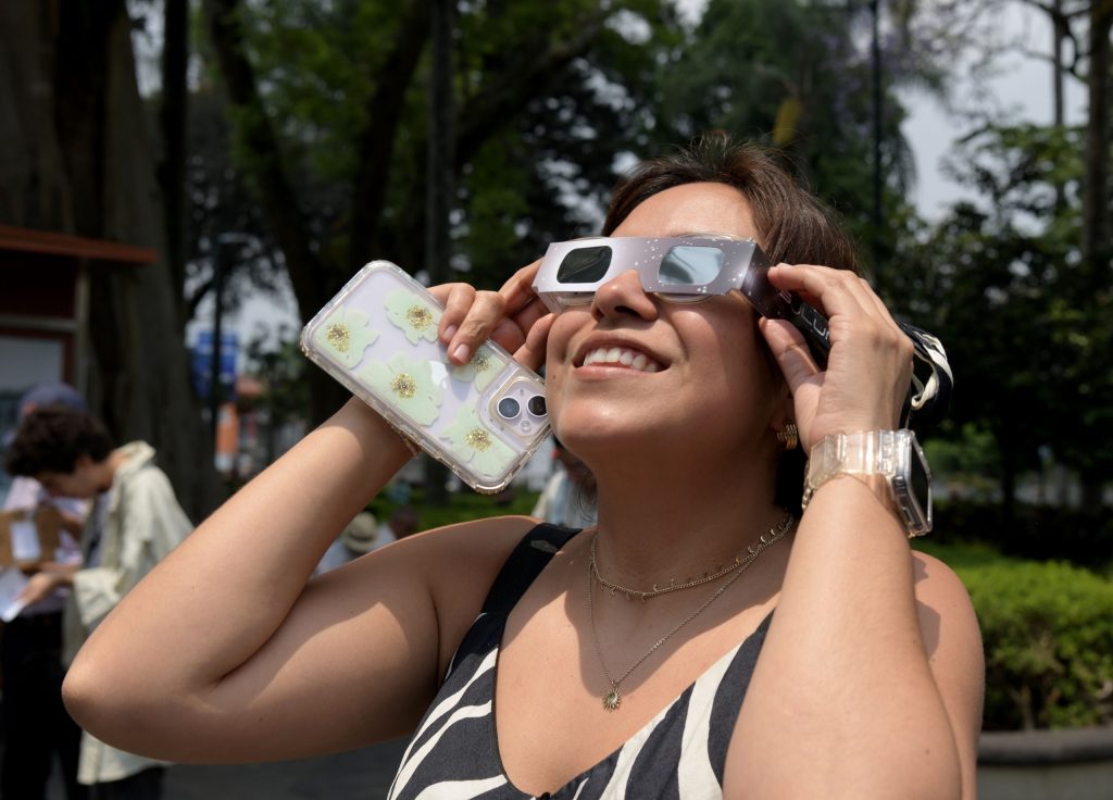 Xalapa, Ver.- Con el apoyo de equipos especiales y atendiendo las recomendaciones de Protección Civil, decenas de familias xalapeñas acudieron al parque Benito Juárez para observar el eclipse solar que se registró este lunes.