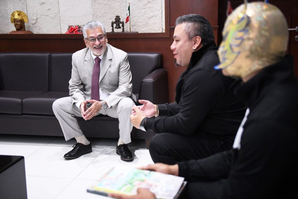 Ante el luchador Gold Finix, el director general de la Promotora de Clase Mundial, Fernando Landa, invitó al Alcalde a la función de lucha libre estelar que se realizará el próximo 29 de agosto en esta capital, y reconoció el apoyo y facilidades de la autoridad para efectuar espectáculos de primer nivel, como lo merece la afición de Xalapa.