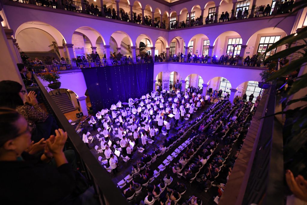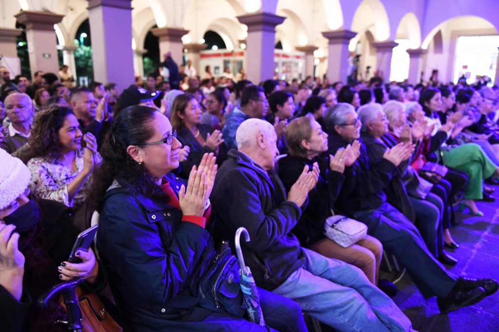 Xalapa, Ver.- Autoridades municipales encabezadas por el alcalde Ricardo Ahued Bardahuil asistieron al concierto que ofreció la Orquesta Sinfónica de Xalapa (OSX) en el patio central de Palacio Municipal para celebrar el 80 aniversario de la Universidad Veracruzana (UV) y el 95 aniversario de esta emblemática agrupación.
