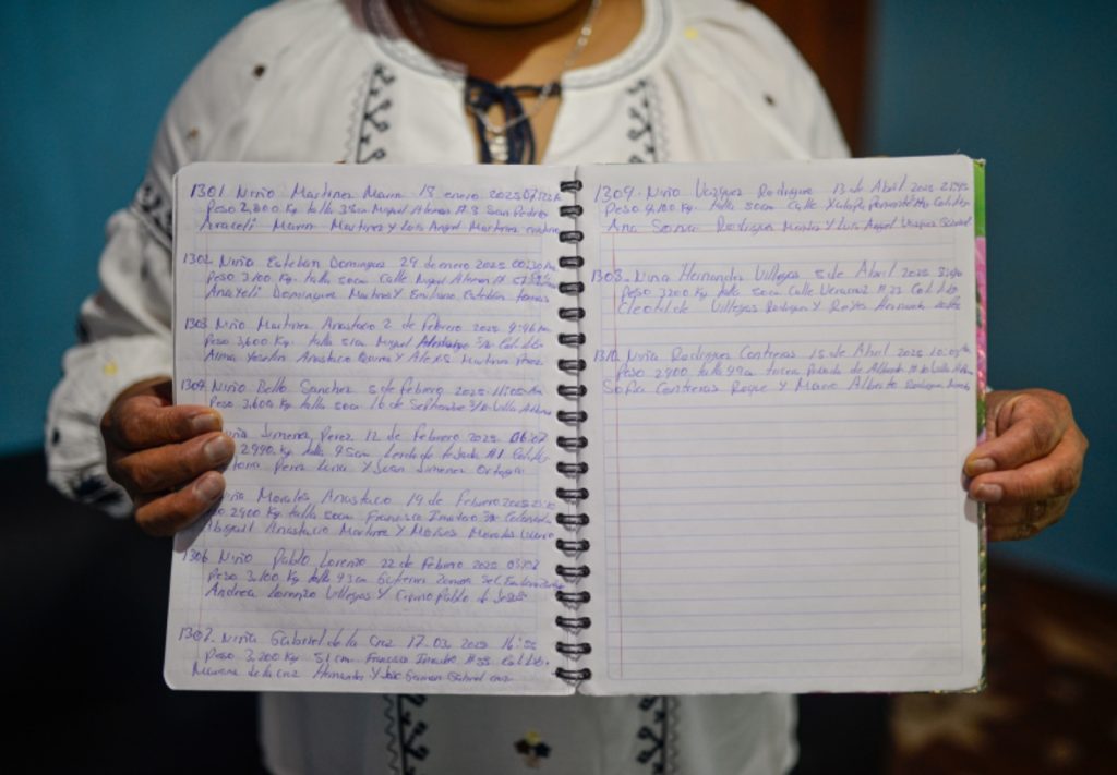 Relata que su formación comenzó desde niña, al observar y asistir a su madre durante los partos: “me enseñó mi madre, yo la ayudaba con las mamás y los recién nacidos, hasta que un día me dijo que ya podía estar sola”. Con el tiempo, adquirió también conocimientos técnicos mediante capacitaciones en unidades de salud.