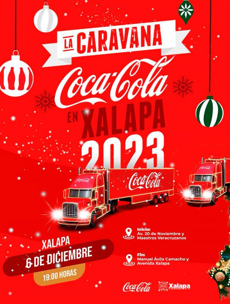 Xalapa, Ver.- Con el fin de brindar seguridad y garantizar que la Caravana Coca-Cola 2023 se desarrolle en orden y sin incidentes, este miércoles 6 de diciembre, de 17:00 a 21:00 horas, se harán cortes a la circulación en la ruta del desfile que iniciará en 20 de Noviembre y Maestros Veracruzanos y concluirá en la avenida Xalapa.