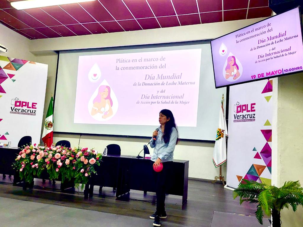 Xalapa, Veracruz, 19 de mayo de 2023. En el marco de la conmemoración del Día Mundial de la Donación de Leche Materna y del Día Internacional de Acción por la Salud de la Mujer, a través de la Comisión Permanente de Igualdad de Género y No Discriminación del Organismo Público Local Electoral del estado de Veracruz (OPLE), se impartió la plática sobre la importancia de la lactancia materna con el fin de incentivar esta actividad.