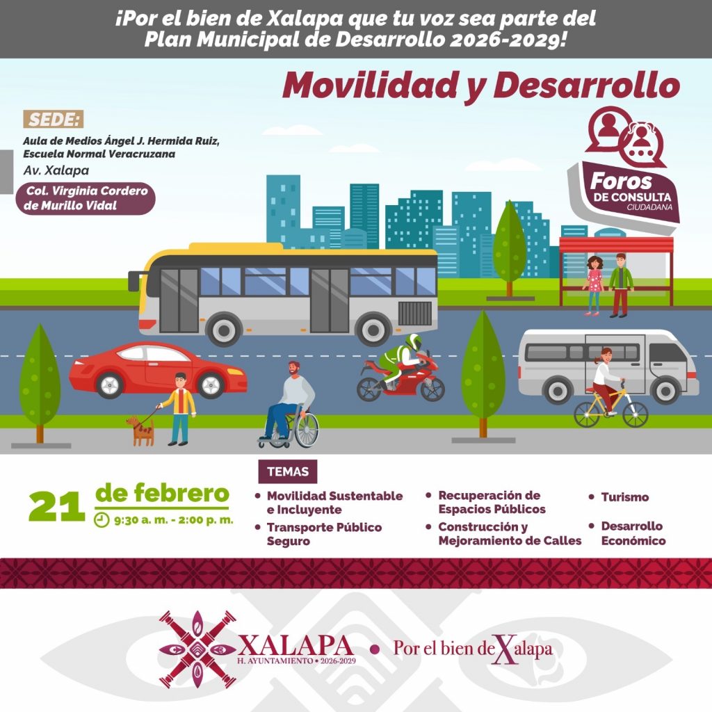 Xalapa, Ver., 3 de febrero de 2026.- Con el propósito de contar con un Plan Municipal de Desarrollo (PMD) que atienda las principales necesidades de la población y considere las propuestas de la sociedad, el próximo sábado 7 de febrero inician los foros de consulta para la elaboración del PMD 2026-2029.