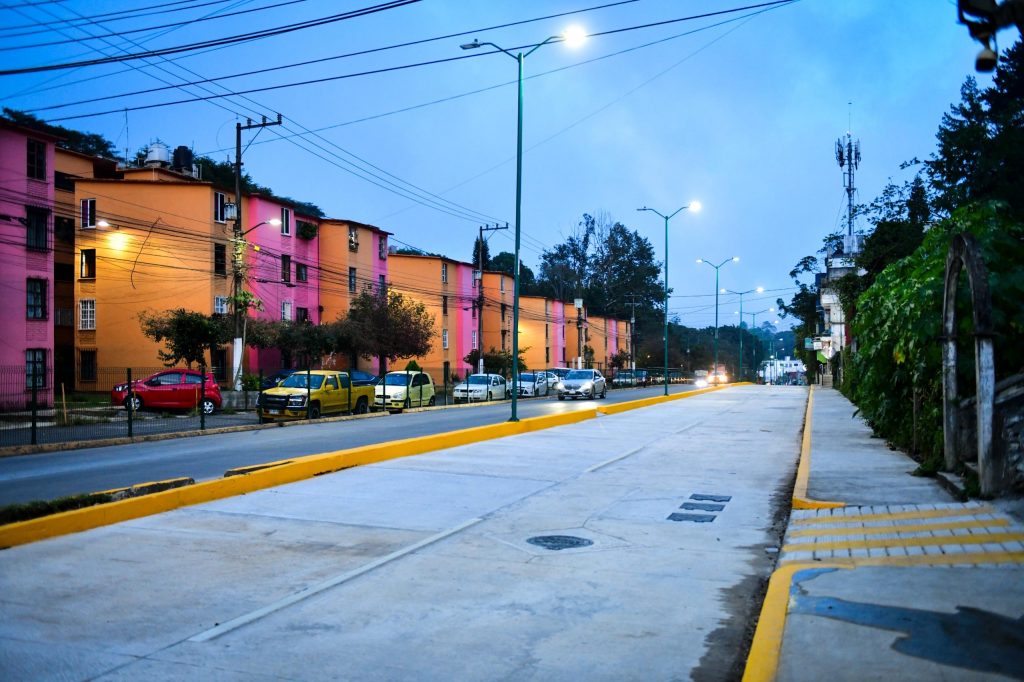 La obra considera la pavimentación con concreto hidráulico de 6 mil 368 metros cuadrados, así como red de agua potable, drenaje sanitario, pluvial, alumbrado público y guarniciones y banquetas, en beneficio de más de 320 mil habitantes que transitan por la zona.