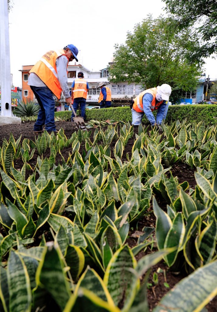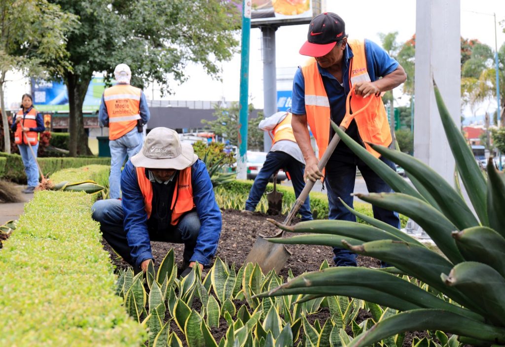 Xalapa, Ver.- Como parte de las acciones permanentes de mejoramiento de la imagen urbana, personal del Ayuntamiento realiza labores de jardinería y mantenimiento en áreas verdes, glorietas y camellones en distintos puntos de la ciudad.