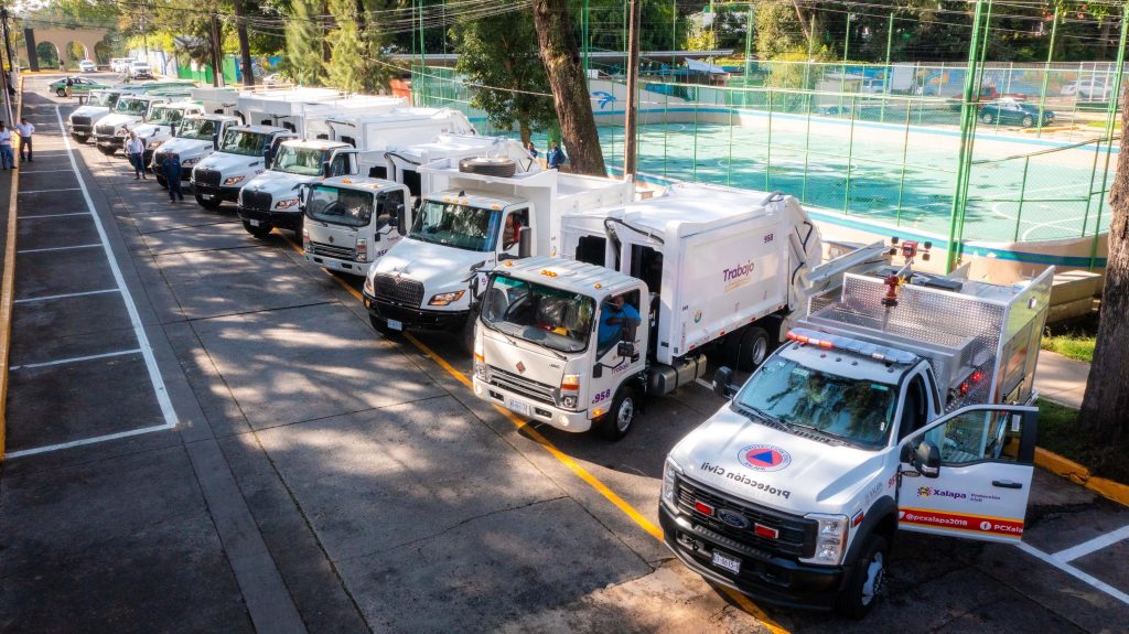 También, dos camiones recolectores compactadores de carga lateral de 21 yardas, un camión con caja compactadora de carga trasera con sistema de levante de contenedores; un camión compactador de 12 yardas, un camión recolector compactador para basura de carga trasera y un camión de ataque contra incendios.