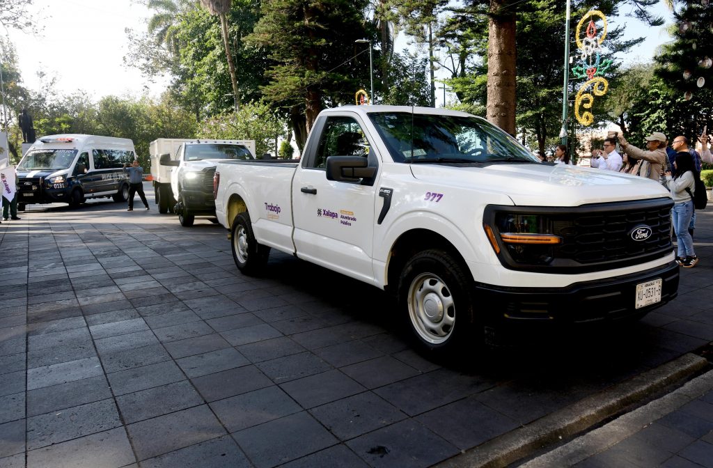 Durante el acto protocolario realizado en el parque Benito Juárez, se entregó un vehículo Transit Bus a la Policía Municipal; una camioneta con plataforma a la Dirección de Desarrollo Económico; una camioneta plano largo a la Coordinación de Imagen Urbana, y una camioneta F-150 a las direcciones de Limpia y Alumbrado Público.