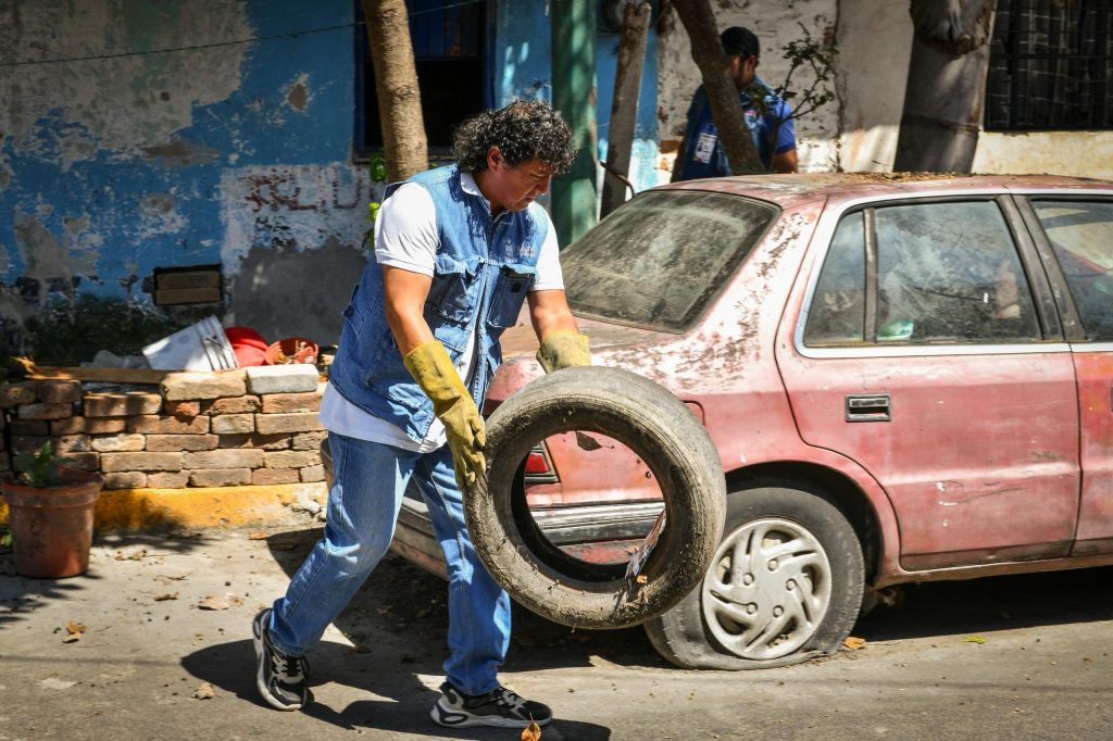 Durante la jornada, personal del Departamento de Regulación Sanitaria, en coordinación con vecinas y vecinos del área, retiró objetos inservibles susceptibles de acumular agua y convertirse en focos de reproducción del mosquito transmisor.