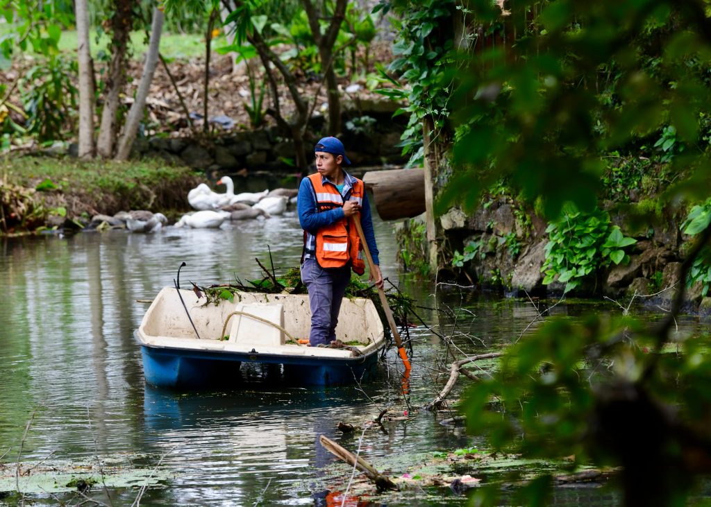 Desde hace una semana se está retirando el lirio acuático y otras especies de vegetación entre las que destacan el helecho de agua, la planta sombrero y la oreja de elefante, con el fin de mantener en buen estado el lago de este parque.