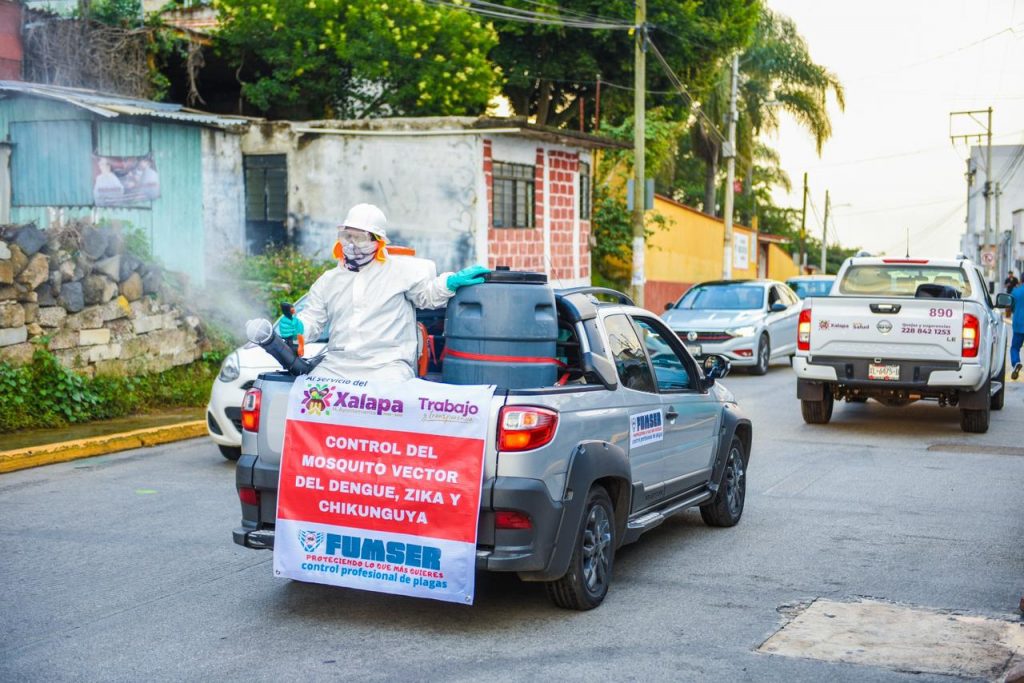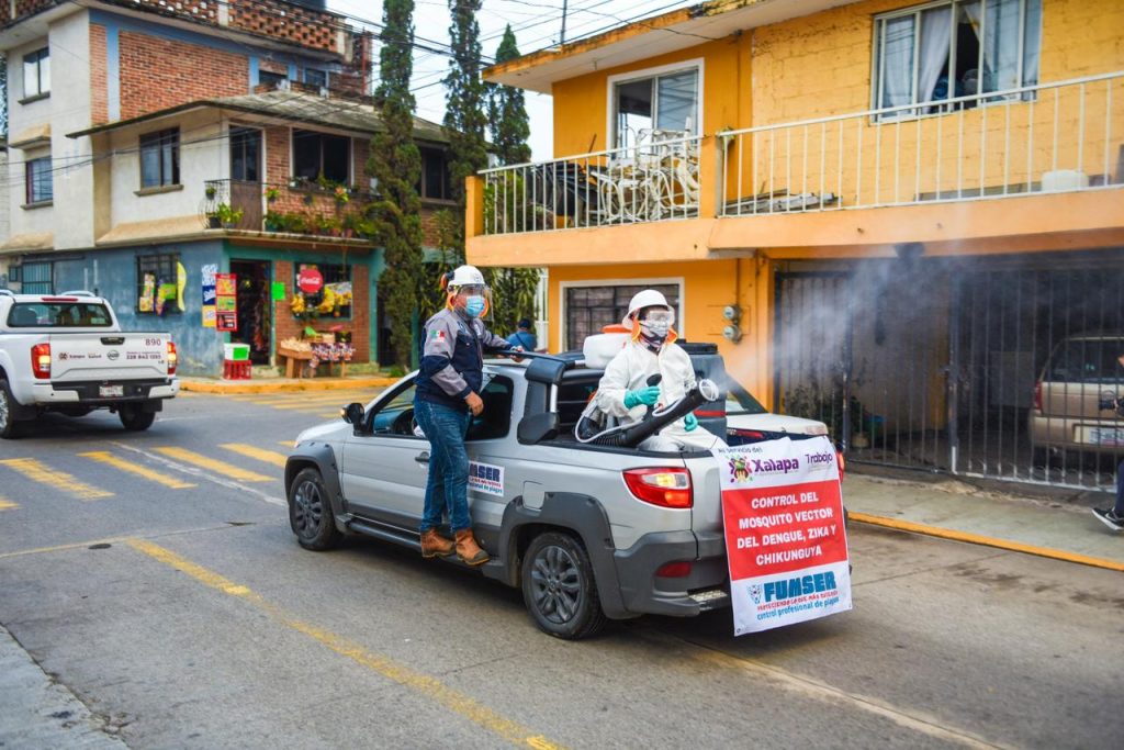 Xalapa, Ver.- Como parte de las estrategias de prevención de enfermedades como el dengue, zika y chikungunya, el Ayuntamiento, a través de la Dirección de Salud y el Departamento de Regulación Sanitaria, realizó la termonebulización de calles en la colonia El Olmo, de la congregación Julio Castro, “Las Trancas”.
