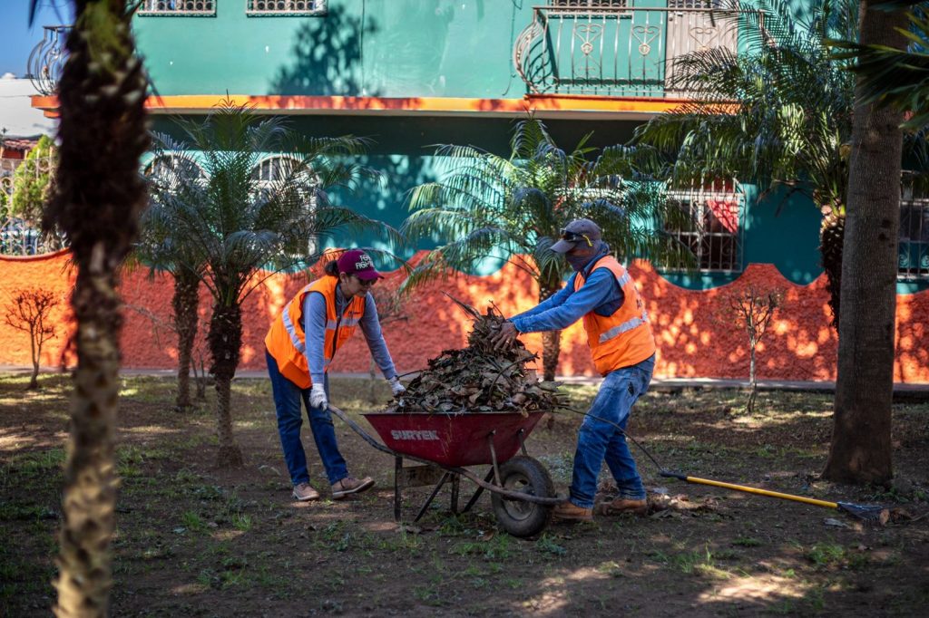 Como parte de las acciones se brindó atención a las áreas ubicadas en la calle Arquitectos, entre Retorno 6 y 3, así como al parque de la calle Ingenieros, en la Unidad Magisterial.