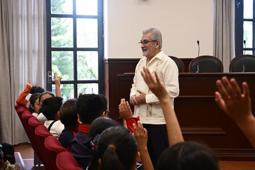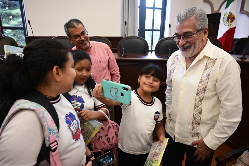Xalapa, Ver.- Los niños son el presente de Xalapa y, por ello, este Ayuntamiento trabaja por su bienestar, afirmó el alcalde Alberto Islas Reyes, al recibir en la Sala de Cabildo a alumnado y personal docente de la Primaria “Graciano Valenzuela”.