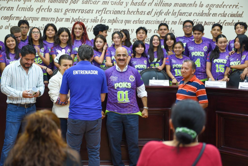 Recibe Ricardo Ahued a equipo de voleibol Poks