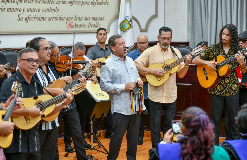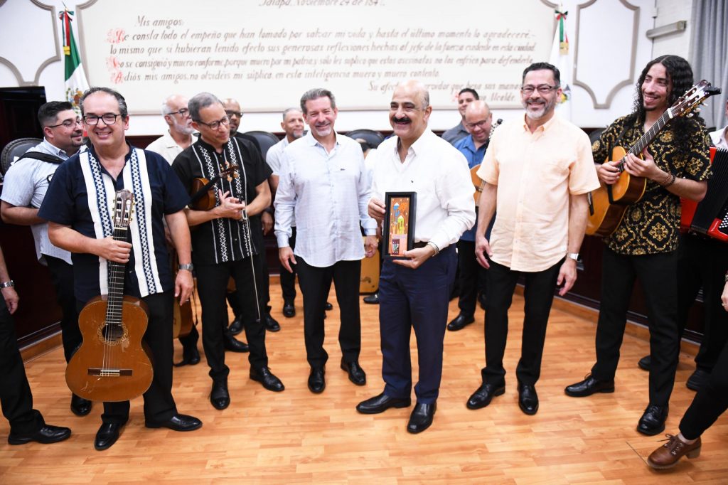Xalapa, Ver.- Este martes el alcalde Ricardo Ahued Bardahuil recibió en la Sala de Cabildo a integrantes de la Tuna de Segreles de Puerto Rico, como parte del XI Festival Internacional de Tunas Femeniles, que se desarrollará del 1 al 3 de agosto en esta capital.