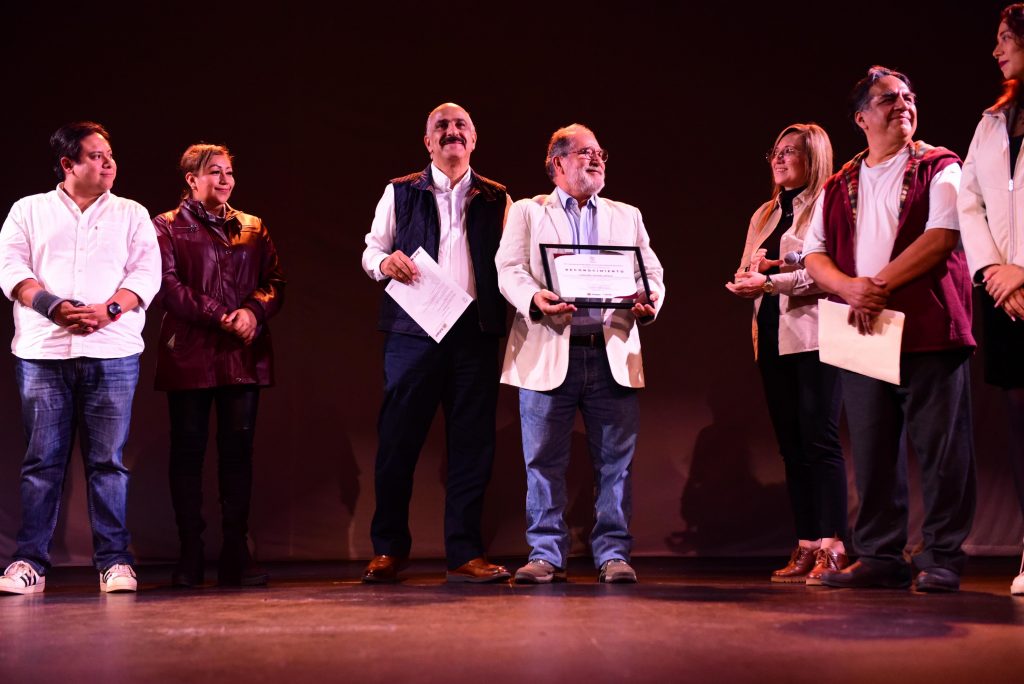 Xalapa, Ver.- Por ser un patrimonio cultural de la ciudad y 70 años de trayectoria, el presidente municipal Ricardo Ahued Bardahuil entregó un reconocimiento a la Compañía Titular de Teatro de la Universidad Veracruzana y la Orteuv, en el marco de la proyección de “La Virgen Loca, lado b”.