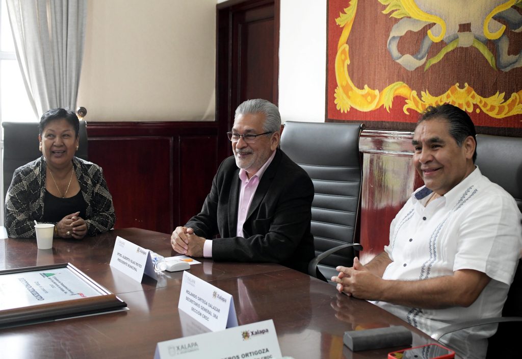 Xalapa, Ver.- Por su respaldo para mejorar las prestaciones laborales, el respeto a las Condiciones Generales de Trabajo y su compromiso con la justicia social, el alcalde Alberto Islas Reyes recibió un reconocimiento del Comité Ejecutivo del Sindicato de Trabajadores al Servicio del Ayuntamiento de Xalapa adherido a la CROC.
