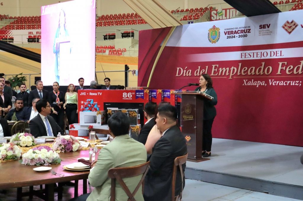 La titular de la SEV, Claudia Tello Espinosa reconoció la labor del personal que diariamente contribuye al funcionamiento de las escuelas y oficinas del sistema federalizado en Veracruz.