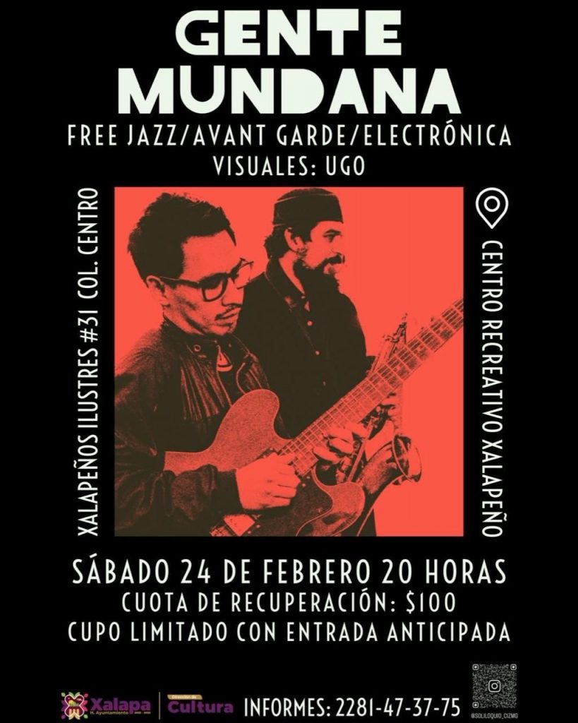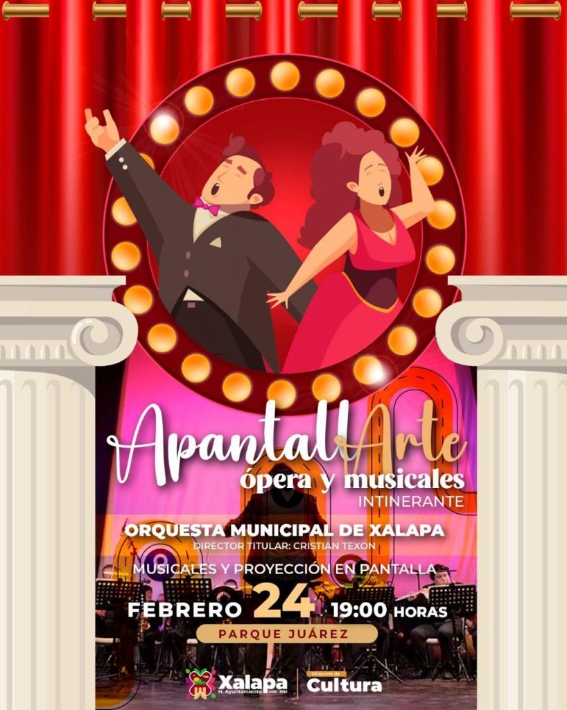 El sábado 24 de febrero a las 19:00 horas, en el parque Benito Juárez, la Orquesta Municipal de Xalapa (OMX) llevará a cabo una edición más de “Apantallarte, ópera y musicales itinerante”; y a las 20:00 horas en el CRX, se realizará el concierto “Gente Mundana”.