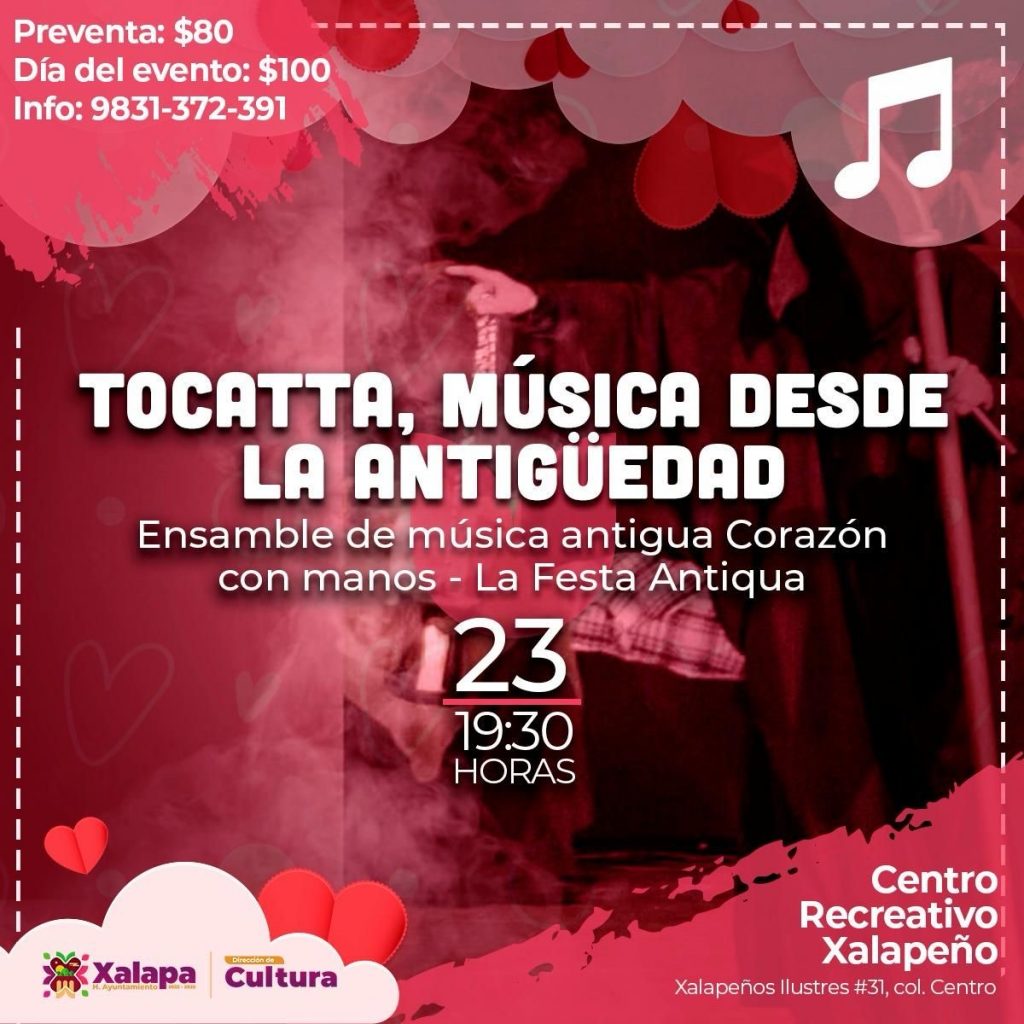 A las 19:30 horas, el Ensamble de Música Antigua Corazón con Manos y La Festa Antiqua presentarán “Tocatta, música desde la antigüedad”, ambos eventos en el CRX.