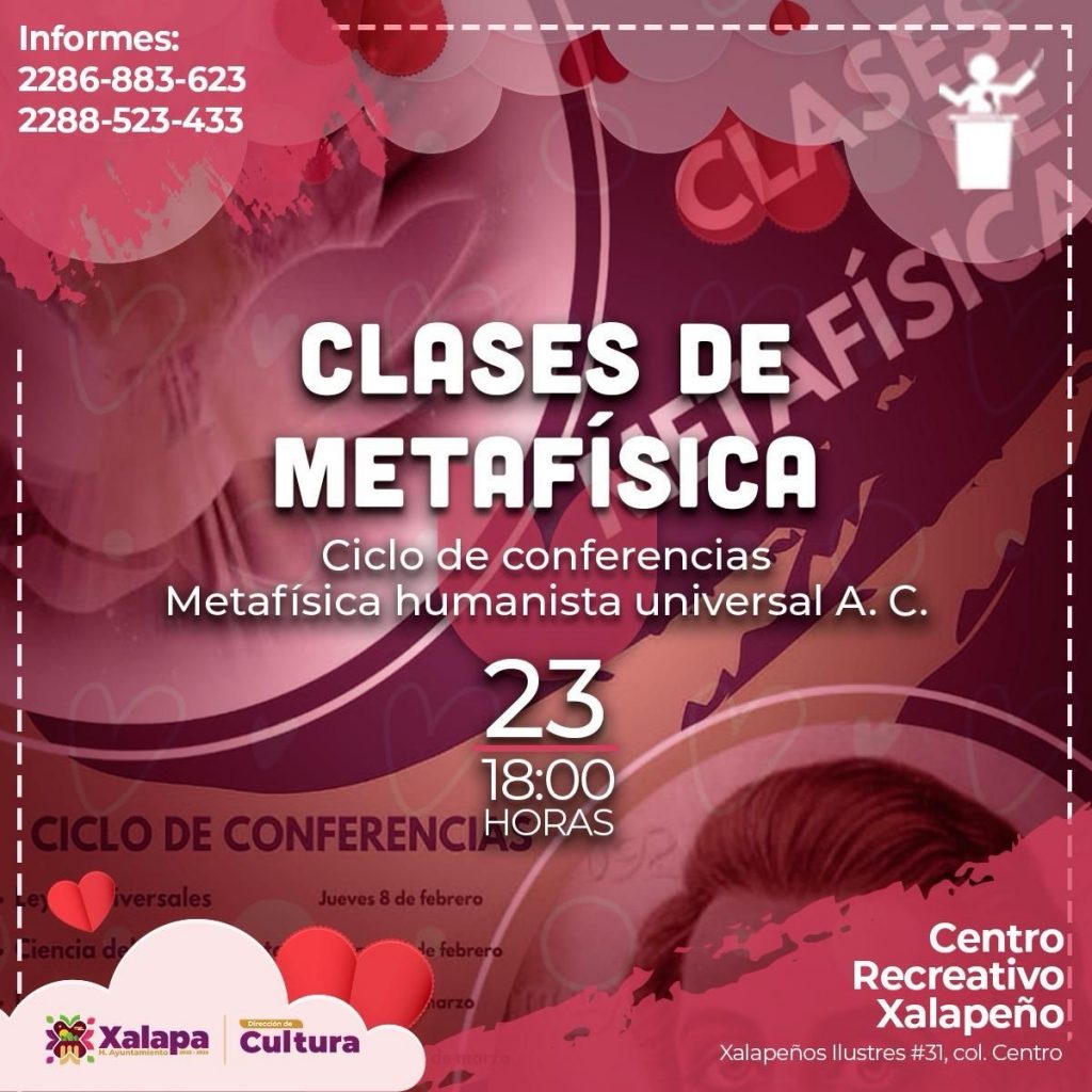 El viernes 23 de febrero a las 17:00 y 19:00 horas en este mismo recinto, se presentará la obra “Amor, una ida y una vuelta”, escrita y dirigida por Hernando Valle; a las 18:00 horas, Metafísica Humanista Universal A.C., realizará un ciclo de conferencias y clases de metafísica.
